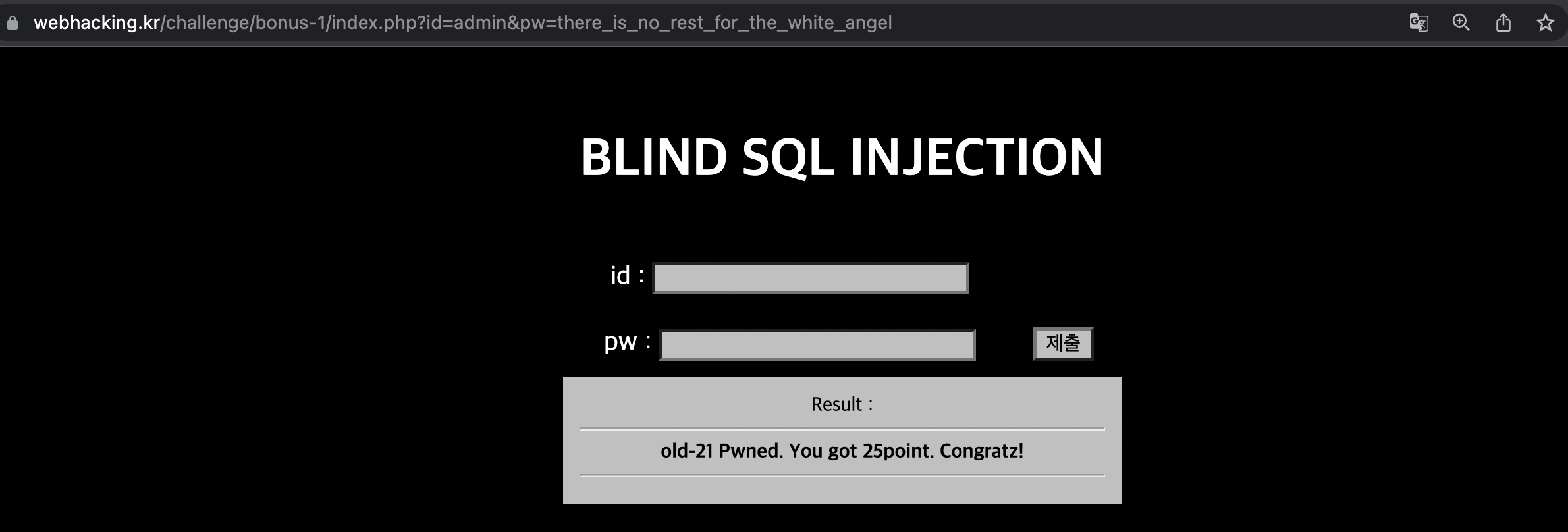 문제에 적혀있듯이 blind sql injection을 활용해야 합니다.