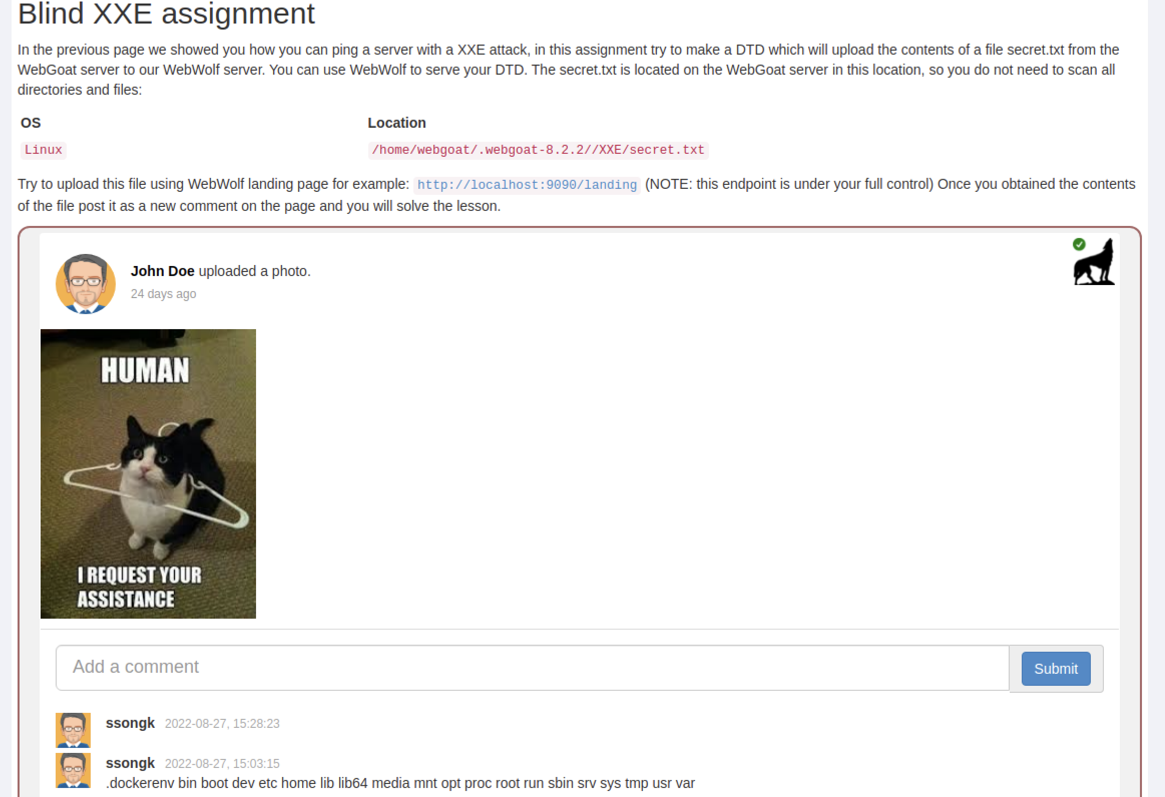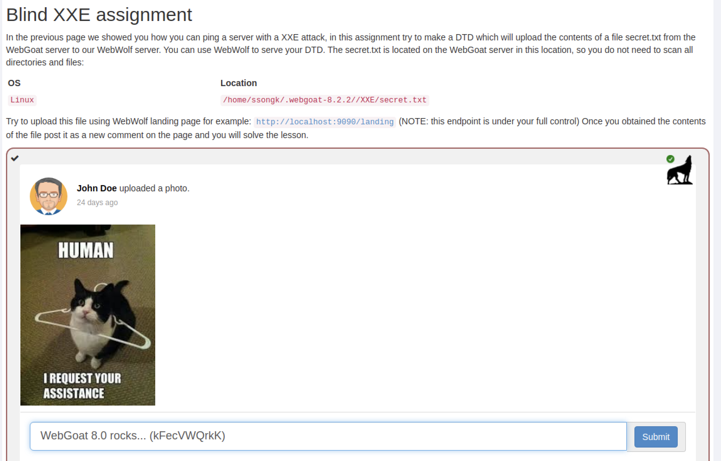 webgoat XXE 강의 중 연습문제 3개에 대한 라업 입니다.