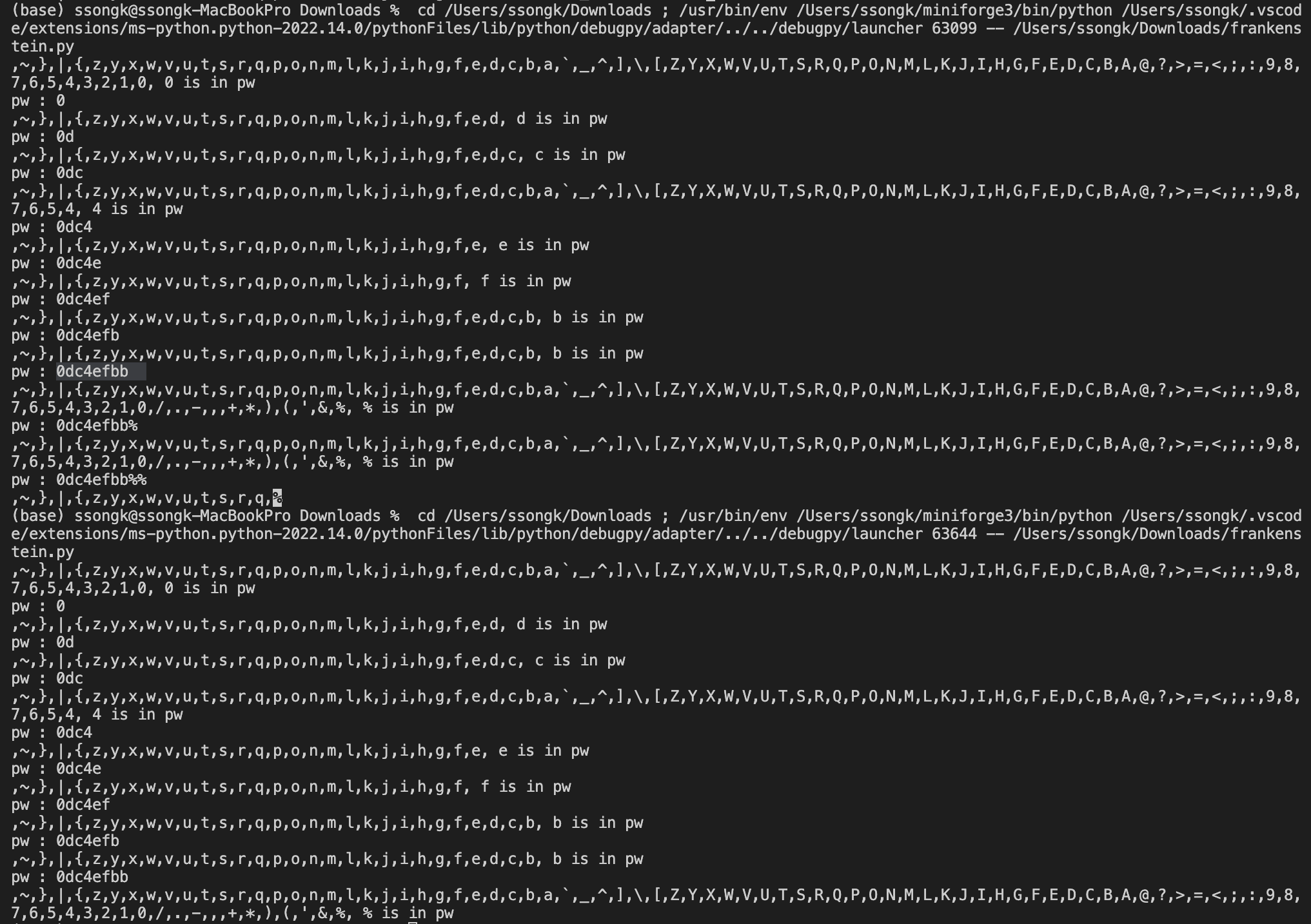 %가 나오면 pw의 끝이므로 while 문을 종료시켜 줍니다.