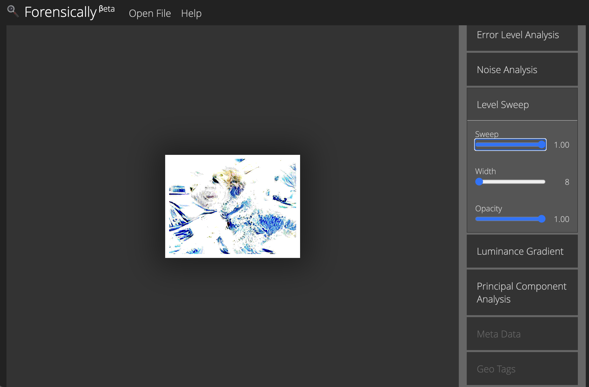 Forensically 사이트에서 사진으로 된 이미지 파일에서 LSB 방법을 활용한 숨겨진 텍스트가 있는지 확인할 수 있습니다.