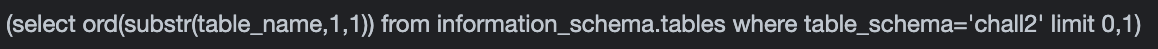 length()와 ord(substr())를 통해 테이블의 이름을 구할 수 있습니다.