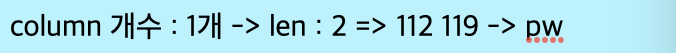 동일한 방식으로 구해주면 컬럼 이름이 pw임을 알 수 있습니다.
