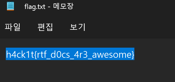 압축을 해제하면 flag.txt 파일이 나오며 해당 파일에 플래그가 있습니다.