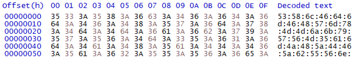 HxD로 확인해주면 :로 구분한 16진수 데이터들이 적혀 있습니다.
