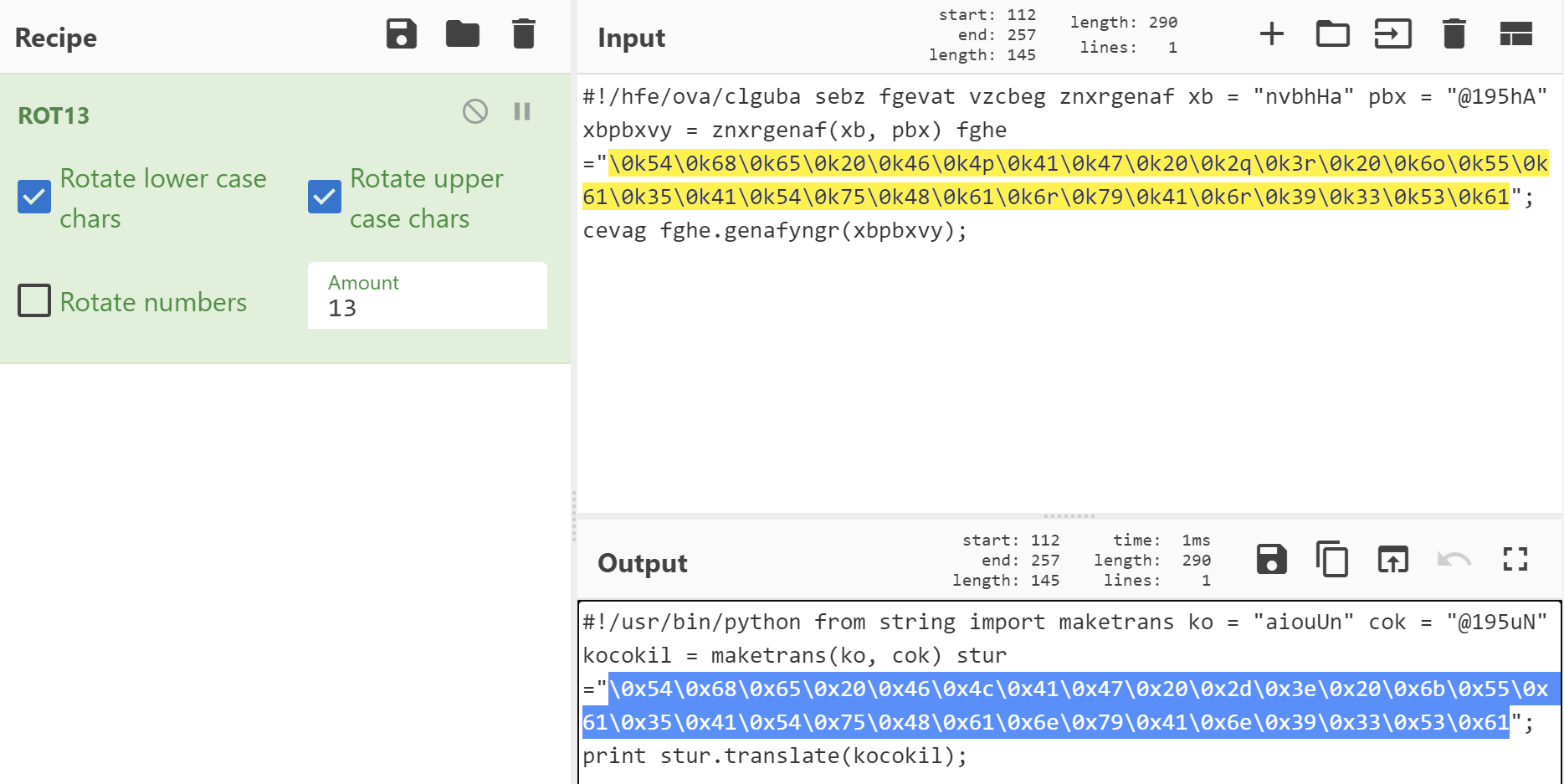 ROT13으로 디크립트 해주면 다음과 같이 나옵니다.