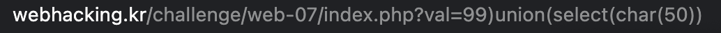 val 값을 get 방식으로 받아서 sql 문에 집어넣고