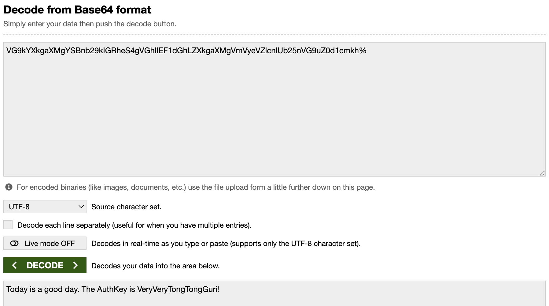 VG9kYXkgaXMgYSBnb29kIGRheS4gVGhlIEF1dGhLZXkgaXMgVmVyeVZlcnlUb25nVG9uZ0d1cmkh