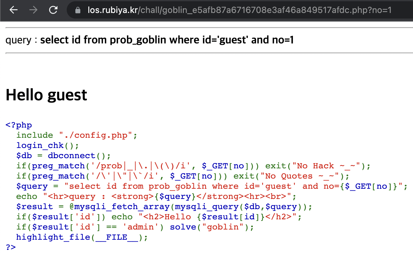 뒤에 넣어준 (no=2) 구문은 true가 되어서 no가 2인 id(admin)가 나오게 됩니다.