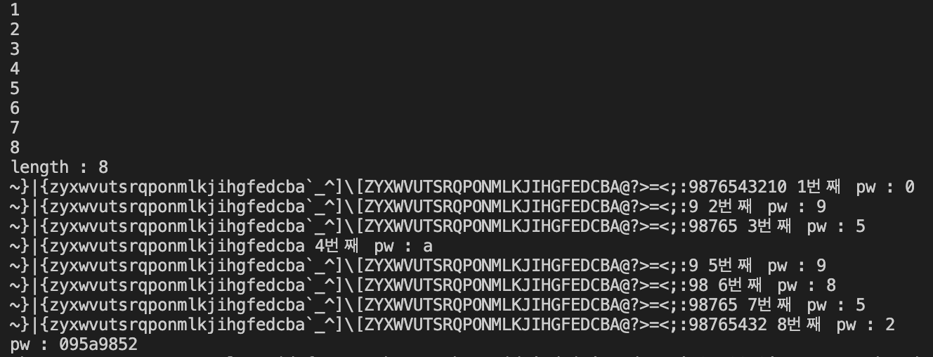 먼저 pw의 길이를 length() 함수를 통해 알아냅니다.