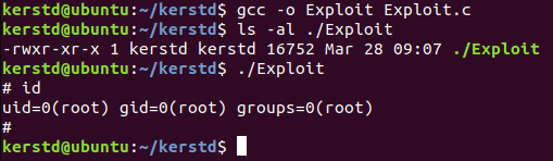 테스트 프로그램을 실행하면 쉘이 실행되고, 해당 쉘의 권한이 root인 것을 확인할 수 있다.