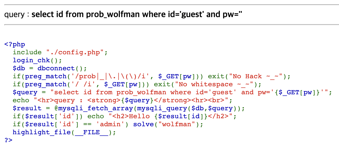 먼저 guest가 id로 들어가 있으므로 해당 조건을 거짓으로 만들기 위해 pw에 임의의 값을 넣어줍니다.