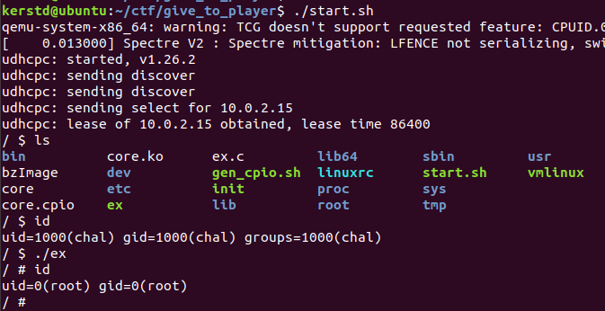 익스플로잇 코드를 사용하기 위해선 core.cpio파일에 넣어줘야 한다.