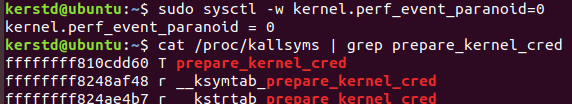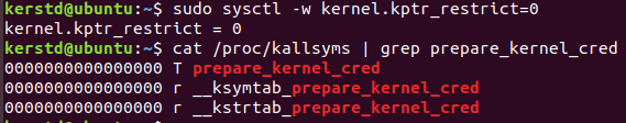 Ubuntu 11.04부터 "/proc/sys/kernel/kptr_rr_rrestrict"는 알려진 커널 주소 출력을 차단하기 위해 "1"로 설정되어 있다.