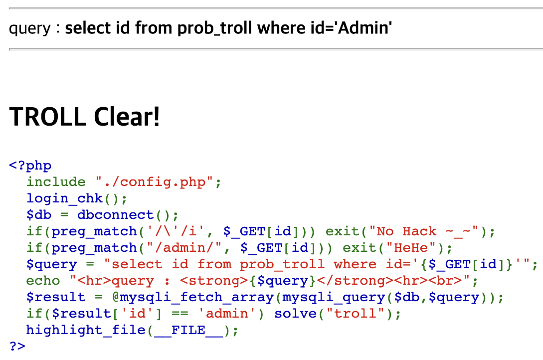 id가 admin이 되면 문제가 풀립니다.