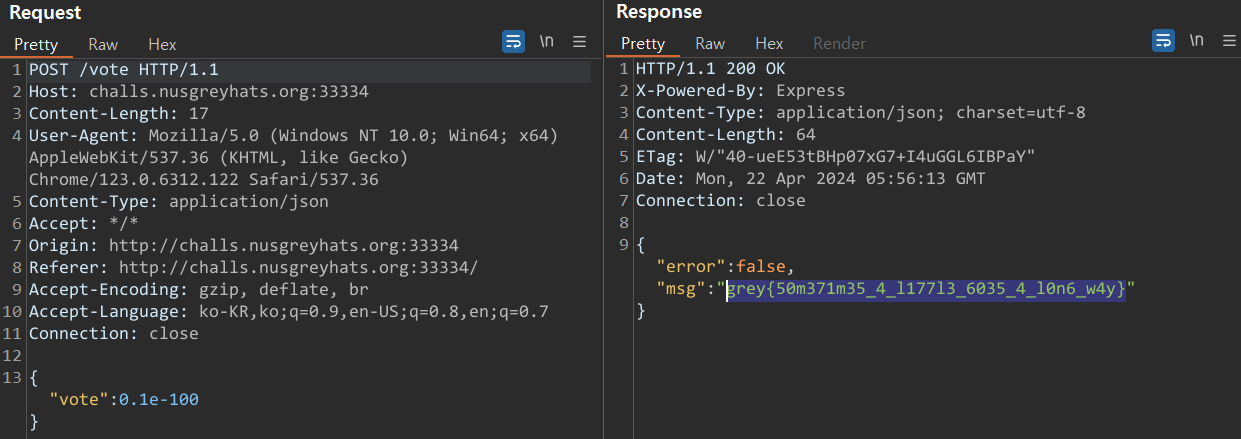 "msg":"Vote must be a number"