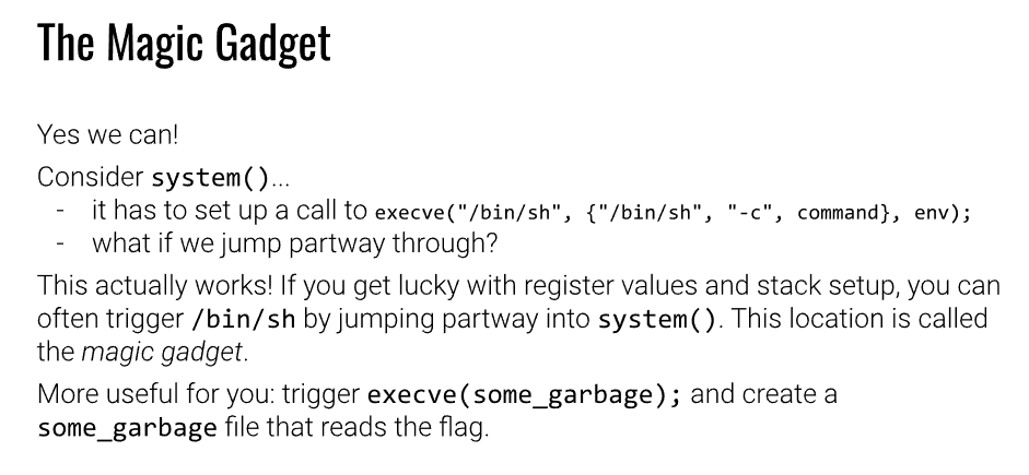 - 원가젯은 "/bin/sh"을 인자로 가지고 execve 시스템 콜을 수행한다.