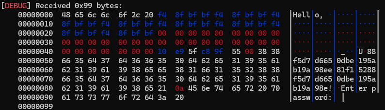 heap = hex(int(p.recvline()[:-1])&0xff)[2:].rjust(2,'0') + heap