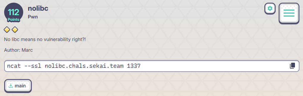p = remote('nolibc.chals.sekai.team', 1337, ssl=True)