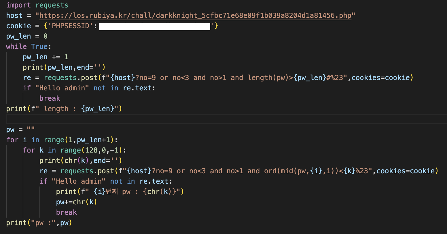 이전 blind sql 문제에서 했던 방식으로 pw의 길이를 구해준 뒤