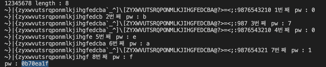 이 과정을 pw의 길이만큼 진행해줍니다.