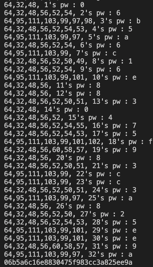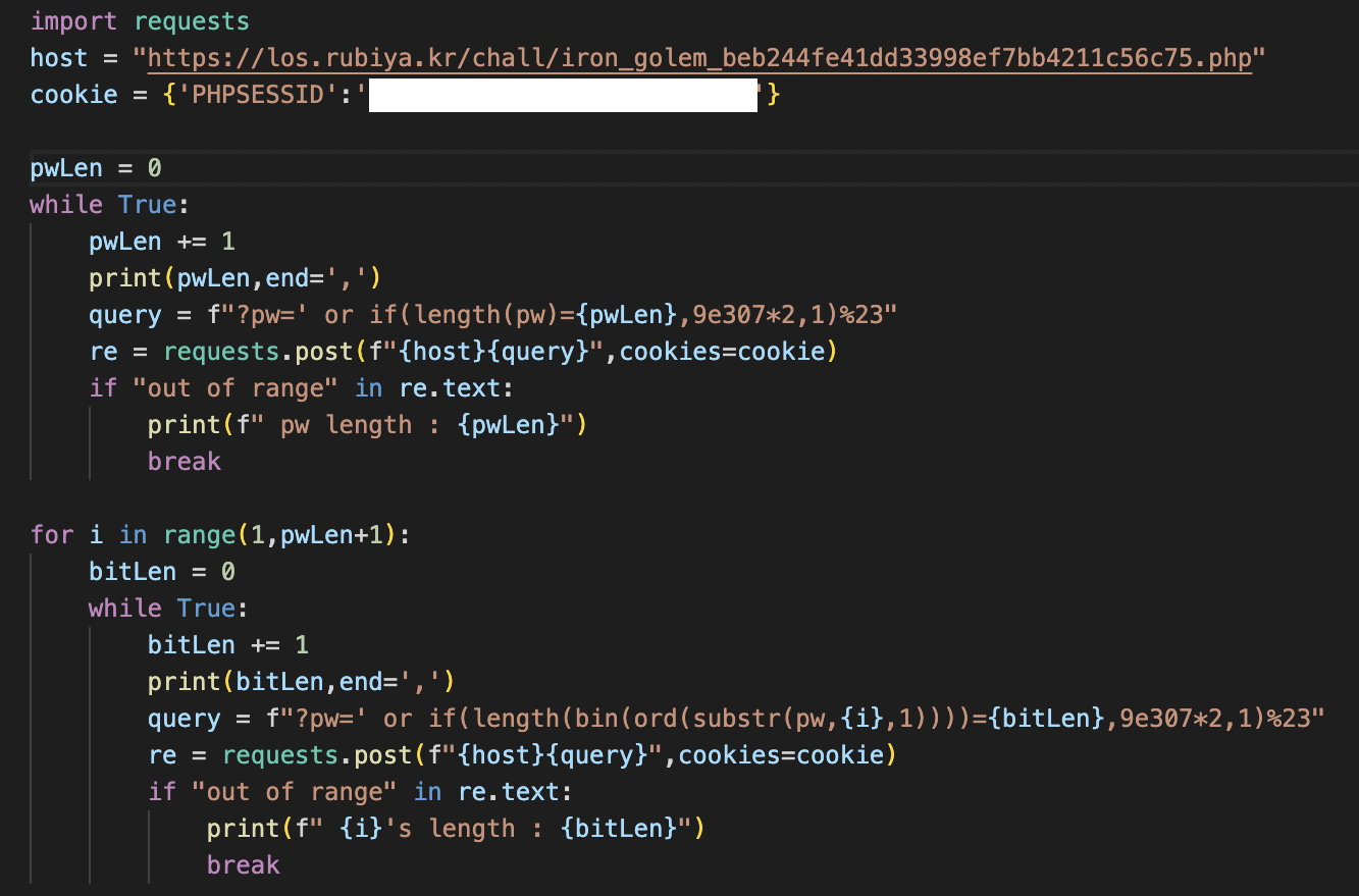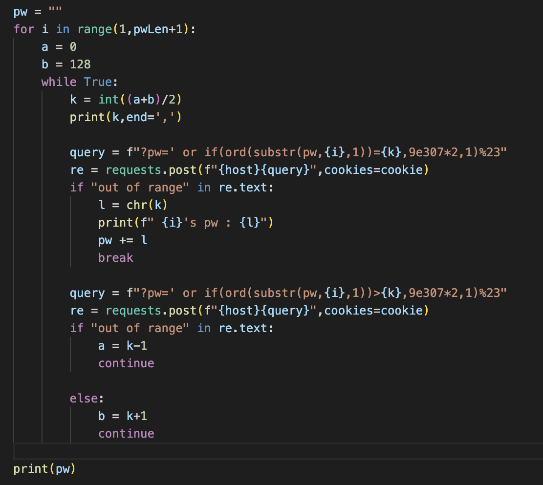 조건문에 원하는 구문을 넣어서 pw를 구할 수 있습니다.