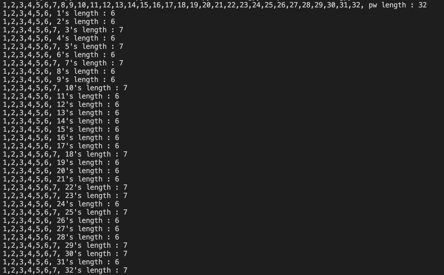 pw를 이진 탐색 방식으로 구합니다. 실행 결과는 아래와 같습니다.