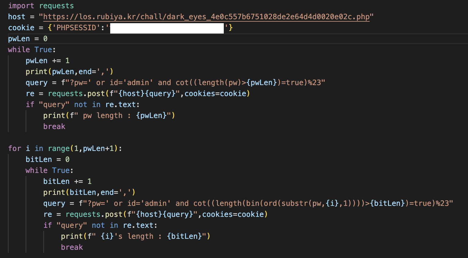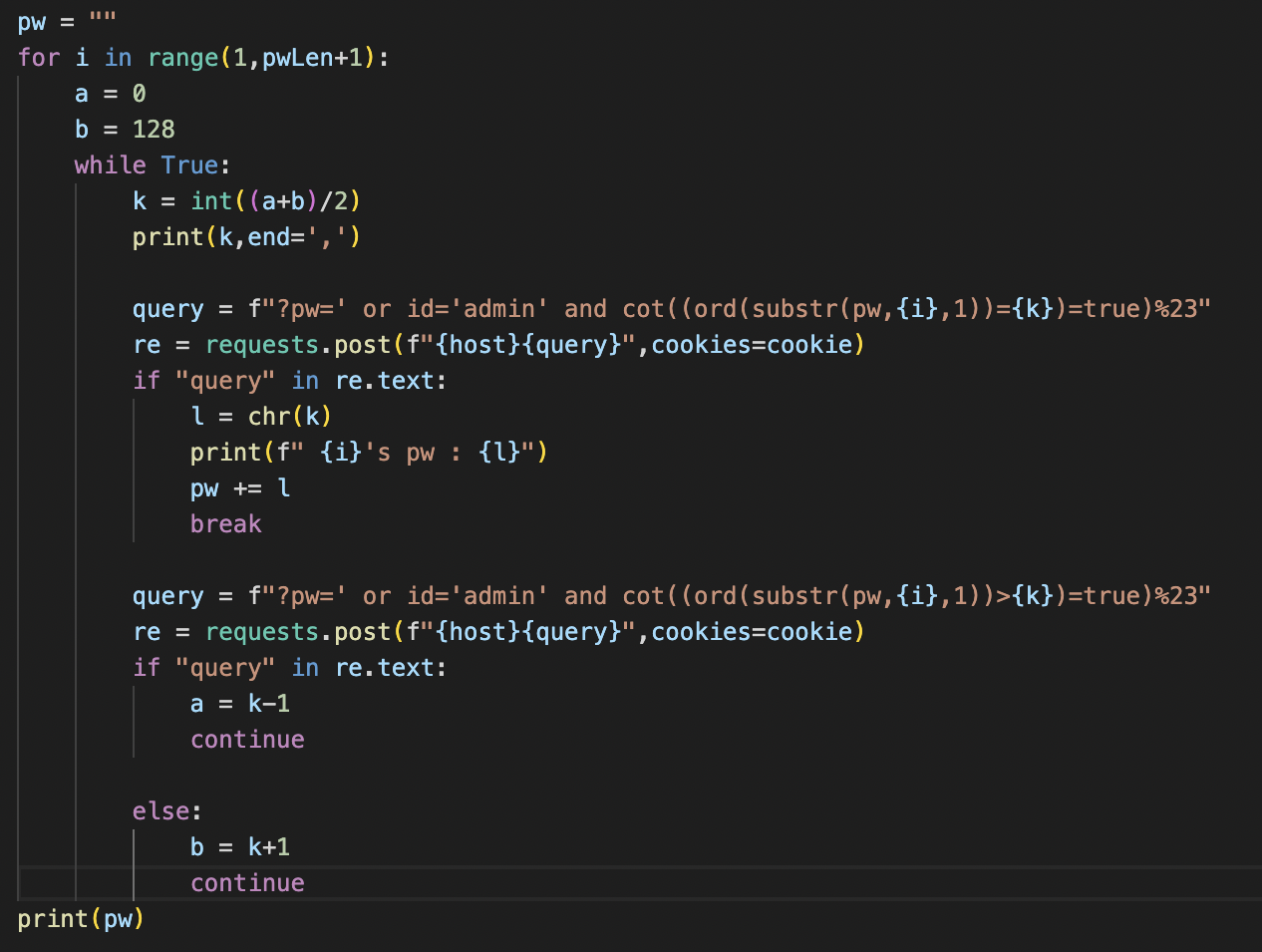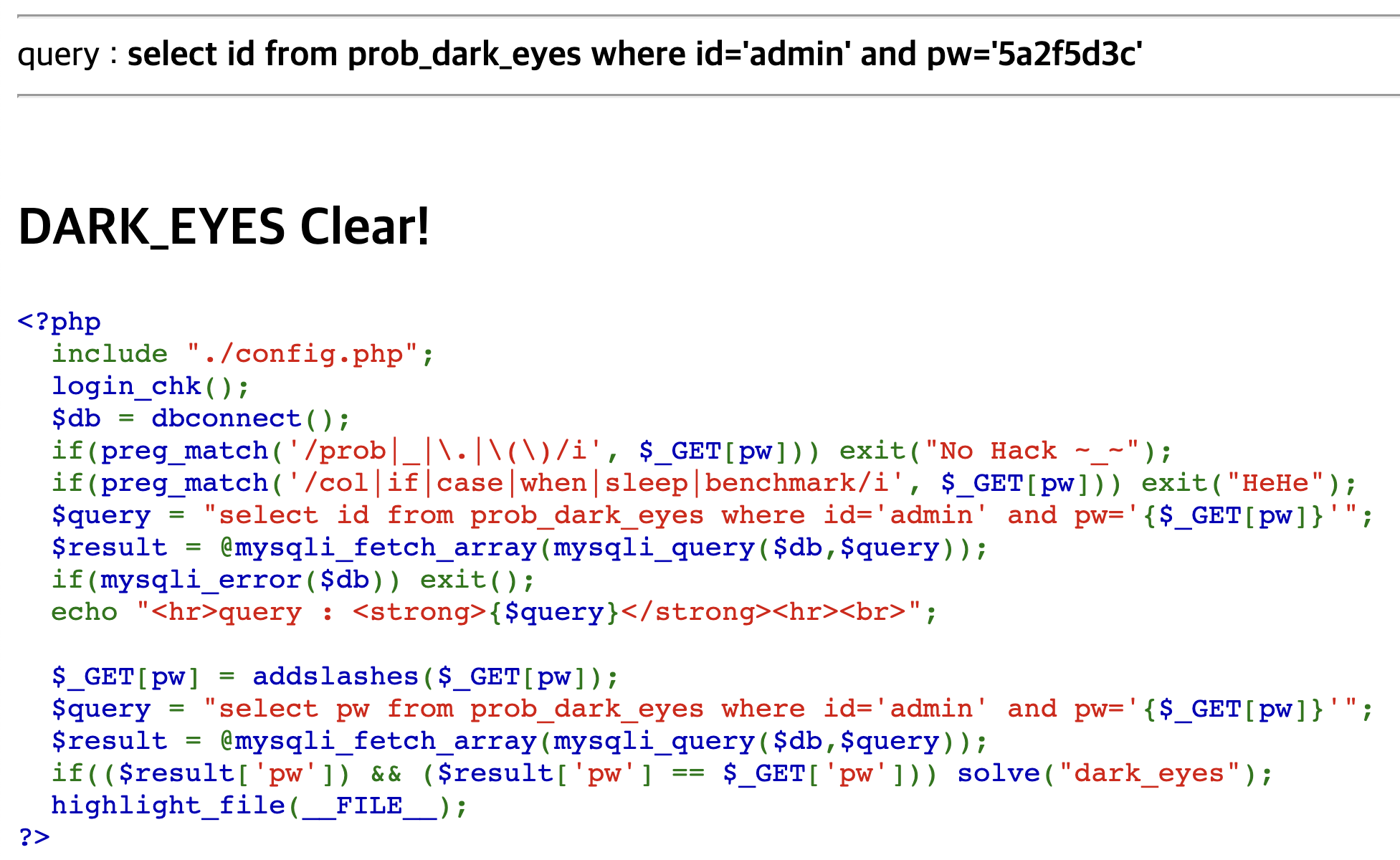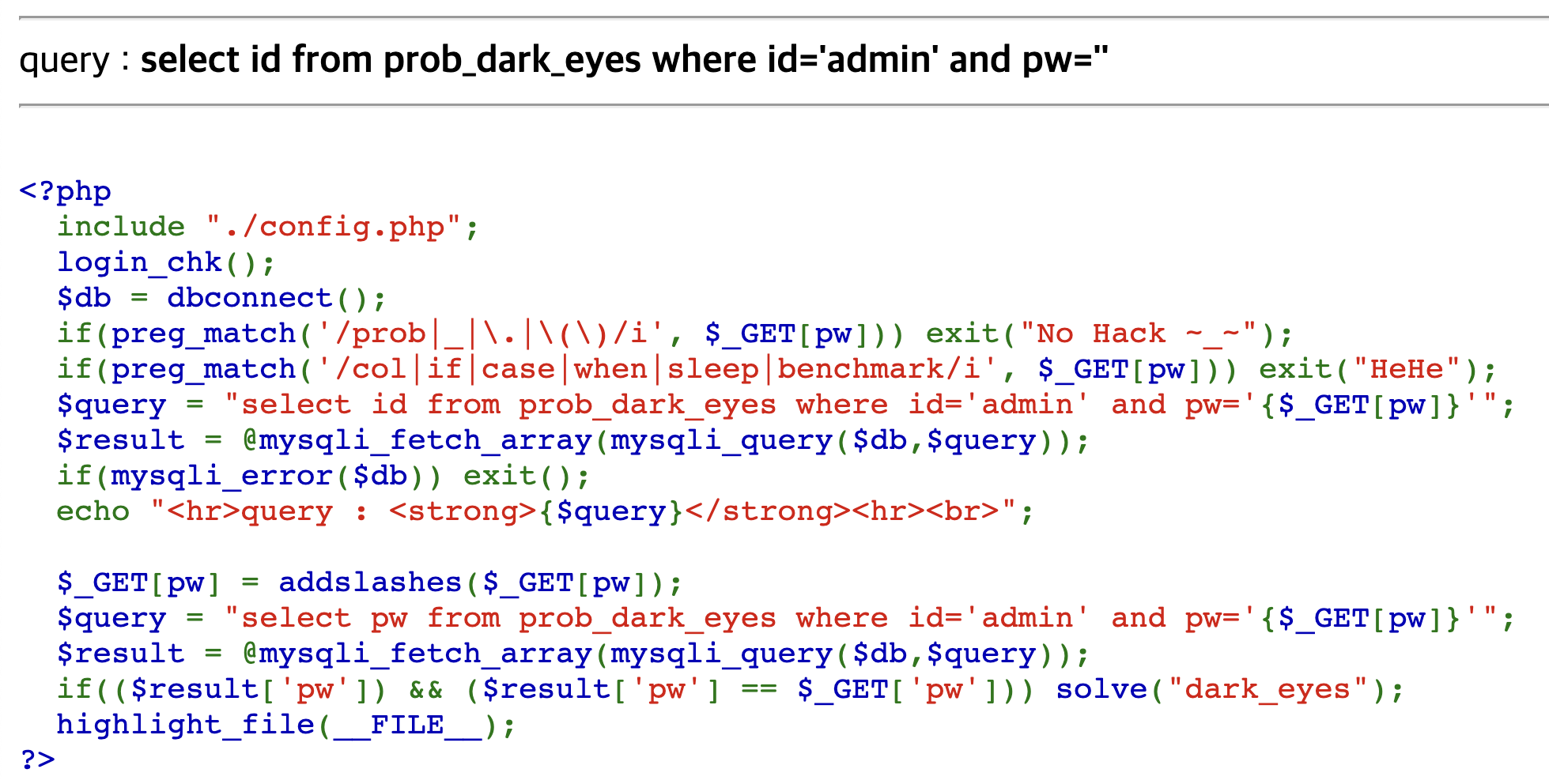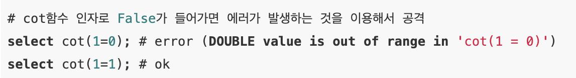 문제의 소스 코드입니다. error based blind sql injection 문제입니다. pw를 정확하게 구하는 것이 목표입니다. 드림핵 강의 중 error based blind sql injection에 관한 내용이 나옵니다. if 문의 조건이 참이..